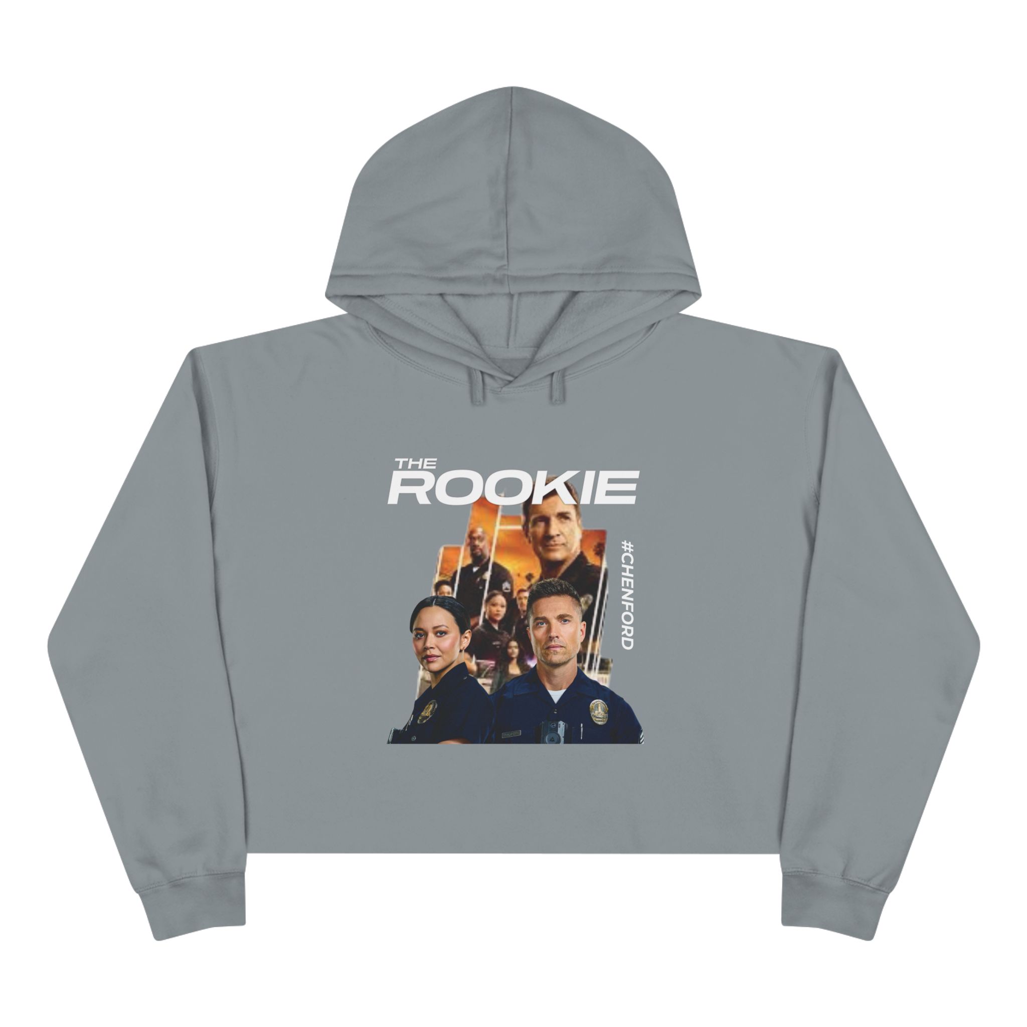 Chenford couple, cropped hoodie that feels like your go-to layer for laid-back days and fan nights. The soft, medium-weight fleece drapes with a relaxed, dropped-shoulder silhouette and a raw hem for an easy, lived-in look. Great for wearing while bingeing a favourite series or meeting up with friends for a low-key evening. Relevant for fans of the TV show ‘The Rookie’.