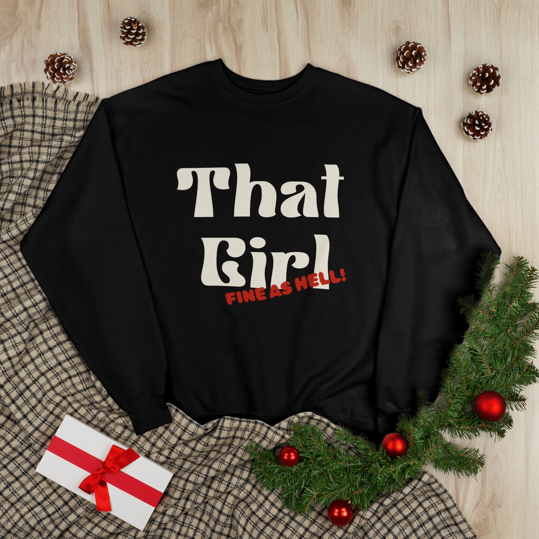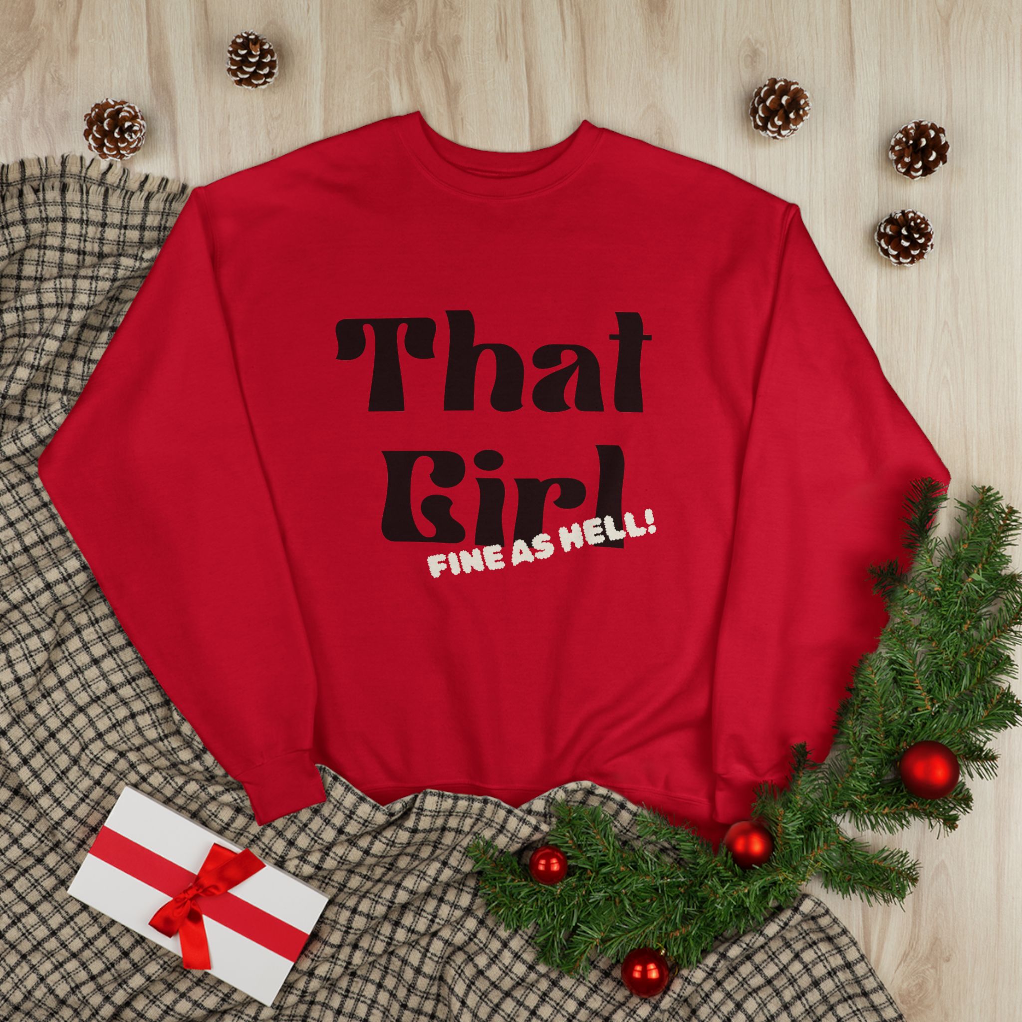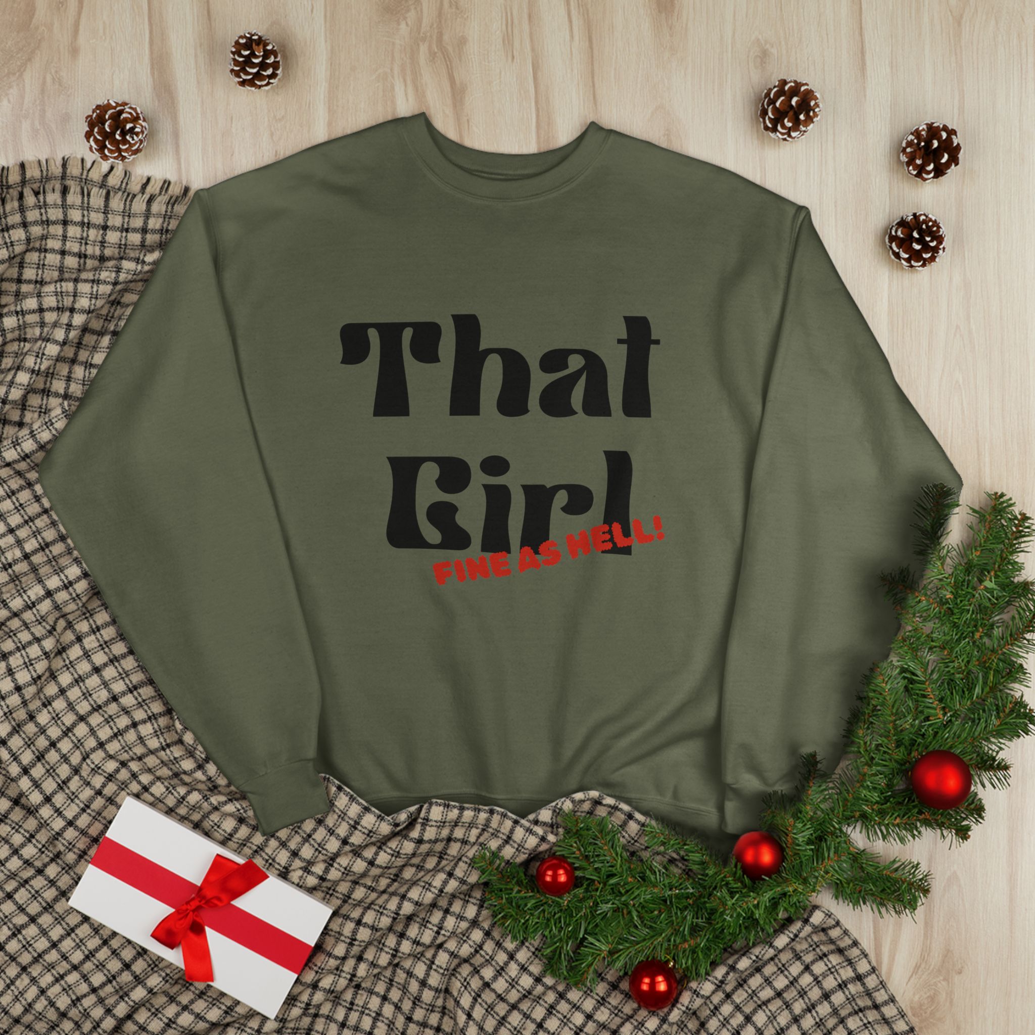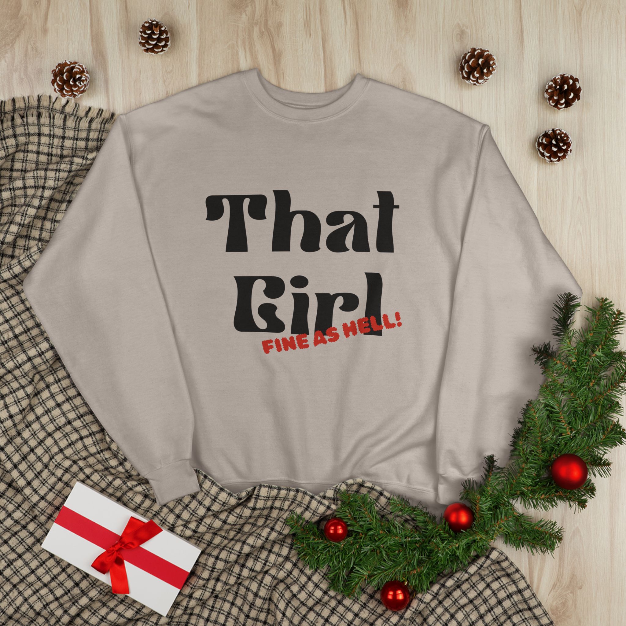 A soft, slightly oversized crewneck that reads like a bold note you’d leave for yourself. The warm fleece interior and medium-weight fabric cradle cool mornings while the clean white canvas makes the playful “THAT GIRL – FINE AS HELL!” message pop confident, cheeky, and effortlessly relaxed. Designed for easy layering, the tubular knit keeps the silhouette smooth and waste-conscious. Durable ribbed collar and double-needle cover-seams stand up to repeated wear, while the tag-free neck keeps things itch-free. A thoughtful mix of cotton and polyester (including a small amount of recycled fibre) balances cozy softness with lasting structure made to be worn loud and lived in.
