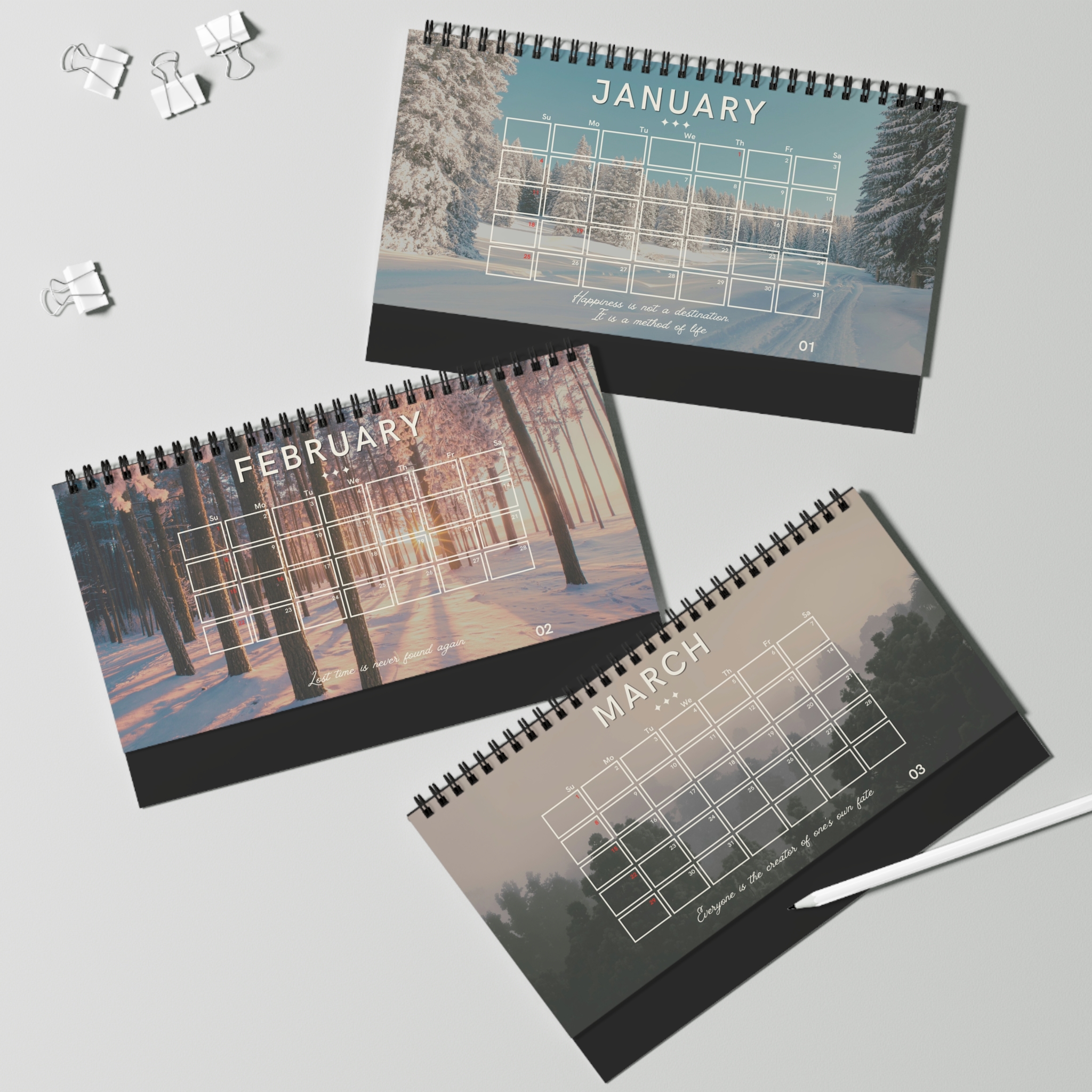 This 10″ x 5″ spiral-bound desktop calendar brings a quiet, focused presence to your workspace. Thick 270 gsm pages make colours pop and give art and photos a tactile weight, while the top spiral lets each sheet lie flat as you sketch, stick notes, or hand-letter your month. Tuck it beside a laptop, on a studio table, or by a plant; it becomes a place to plan slowly, celebrate tiny wins, and shape the year one beautifully crafted page at a time.