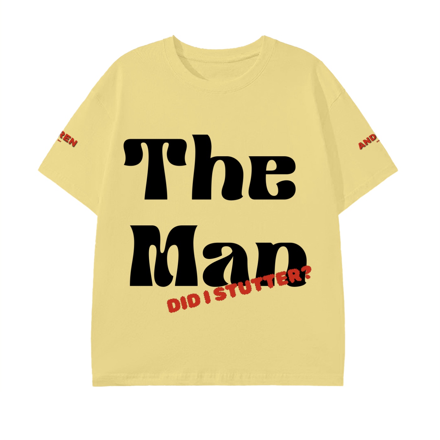 Made for confident leaders, creatives, and go-getters and those with a sense of humour, “The Man! – Did I Stutter” delivers attitude with clean, bold typography. Ideal for casual wear, nights out, or statement moments. The message signals self-belief and authority, marketed through social reels, influencer styling, and bold lifestyle visuals that spotlight presence.